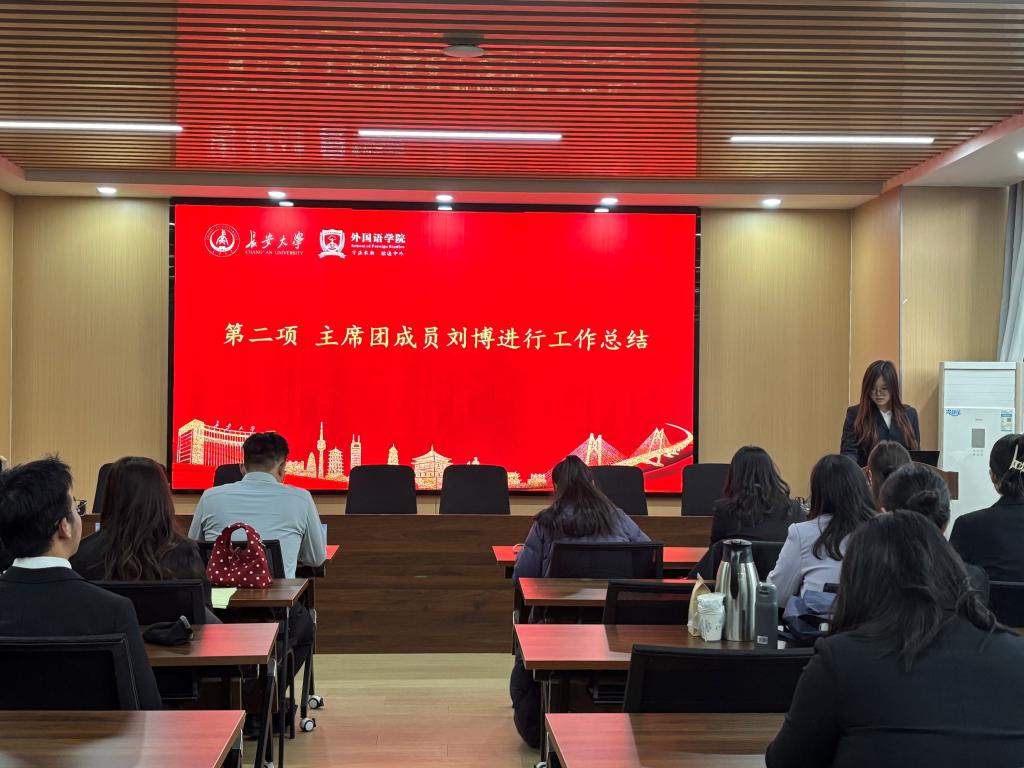 研究生会主席团成员刘博对本学期以来工作开展进行全面回顾,对当前工作中存在的跨部门沟通协同不够顺畅、活动形式创新性不足等问题进行了重点说明。