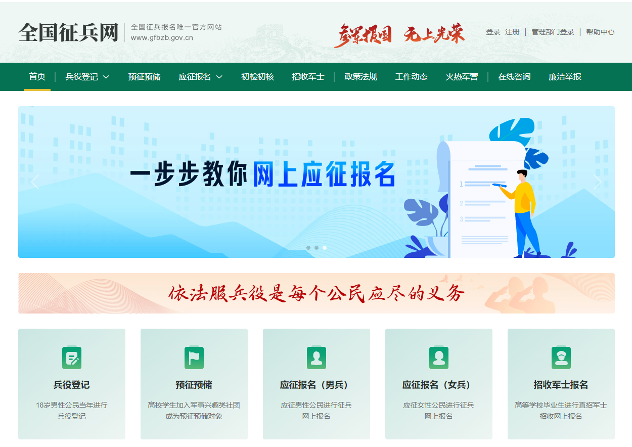 全国征兵网征兵报名网址是http://www.gfbzb.gov.cn