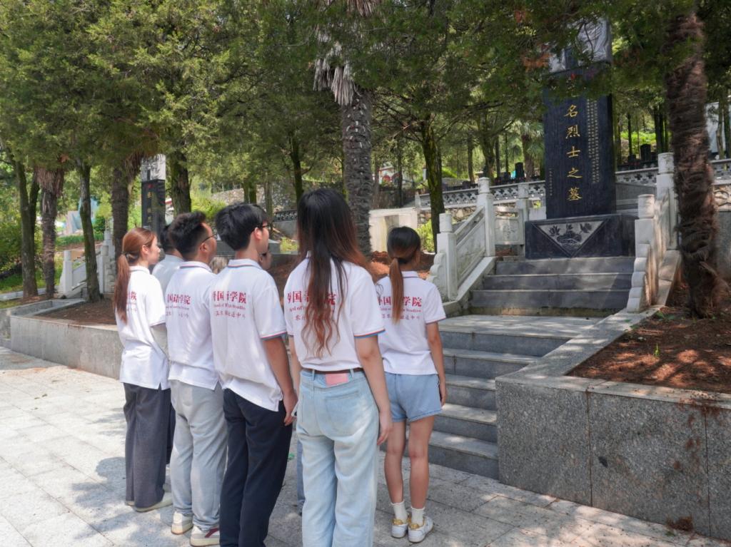 实践队怀着崇敬之心来到商南县烈士陵园。队员们在“商南英烈千古流芳”纪念墙前驻足瞻仰,在无名烈士纪念碑前默哀致敬,在英烈纪念厅中重温历史,深切感受革命先辈英勇不屈的伟大精神。