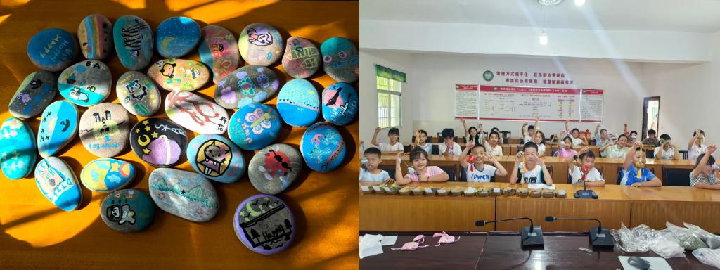 非遗香囊课使学生感受到传统民俗魅力,直观认知香囊文化内涵;黏土课让学生在创作中理解甲骨文的文化价值和及时意义;元音音标课以趣味互动方式,调动学生积极性,帮助学生掌握发音要领;趣味地理课通过活动教学生认识中国省级行政区划,激发学生对各地的兴趣;历史趣味课以有趣内容带领小朋友探索历史知识;绘画课提供石头画板,使孩子们完成了富有想象力和创造力的石头画;“掌中生火”实验激发了孩子们对科学的好奇,播下知识火种,让科学变得触手可及。