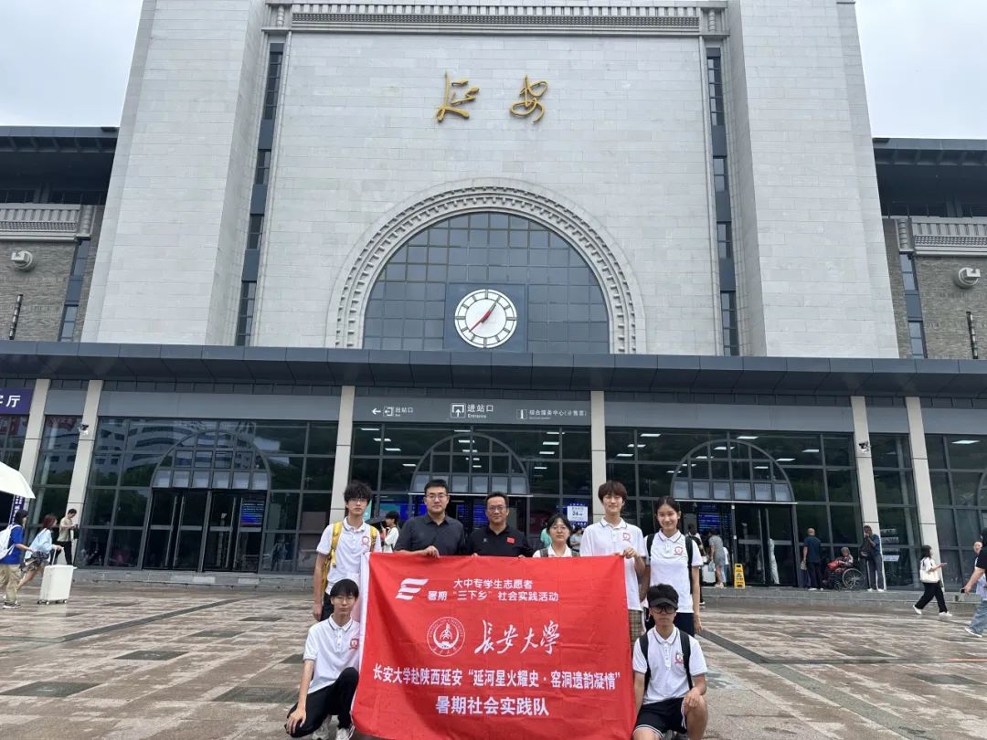 图为实践队在延安火车站前合影